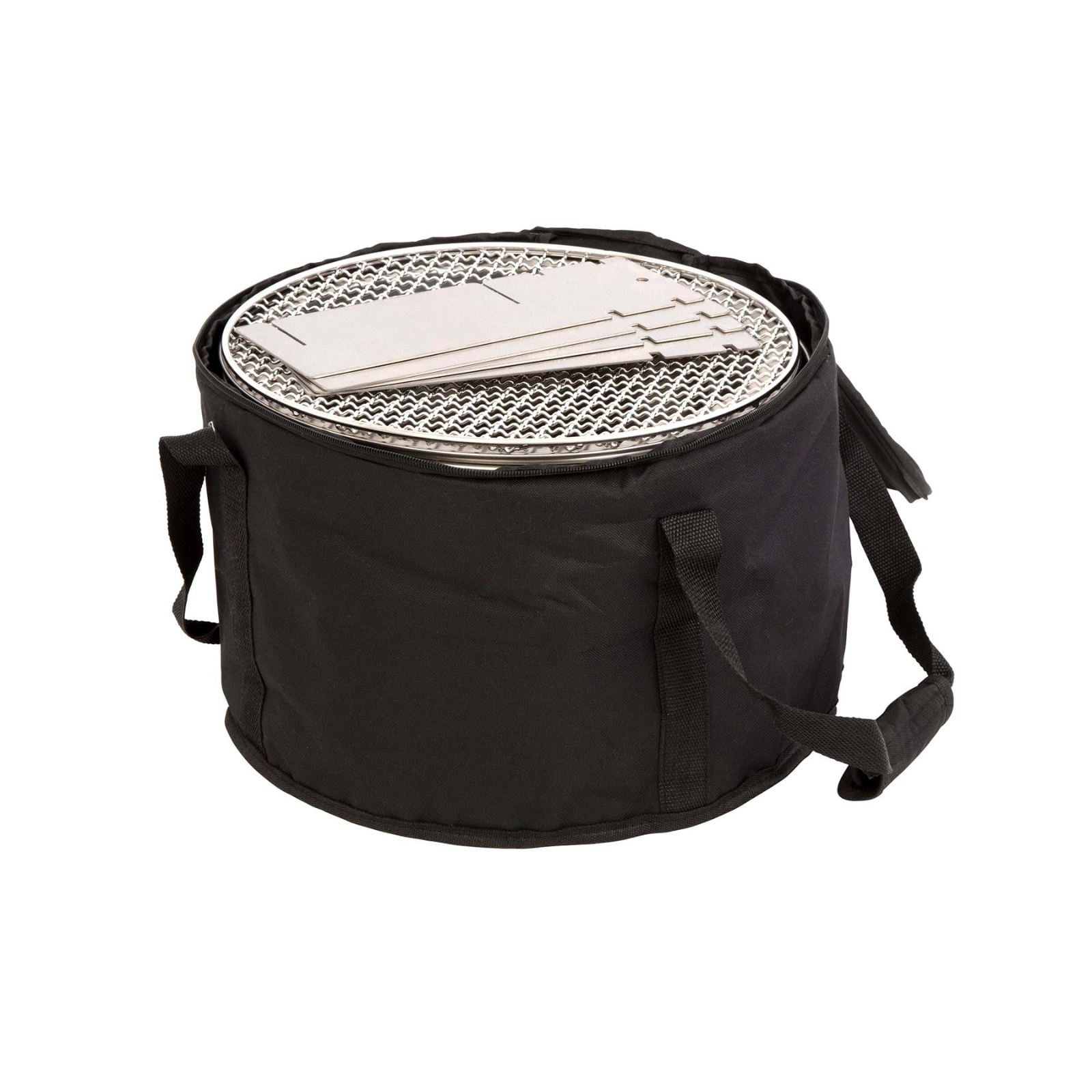 The Charmate Packable Firepit & BBQ features a low smoke design which allows you to enjoy the experience of an open fire without the inconvenience of smoke. It directs oxygen into the fire, which increases the combustion and allows it to burn hotter with less fuel. It is designed to pack into itself so it can be stored in its convenient carry bag, perfect for it to travel with you wherever you go and is also easy to assemble when you need to use it. The Packable Firepit & BBQ is constructed from 304 stainless steel which is durable, lightweight and long lasting. It is versatile, with the included accessories your firepit can also be used as a BBQ or a cooktop. And the stand will protect your surfaces no matter where you are.