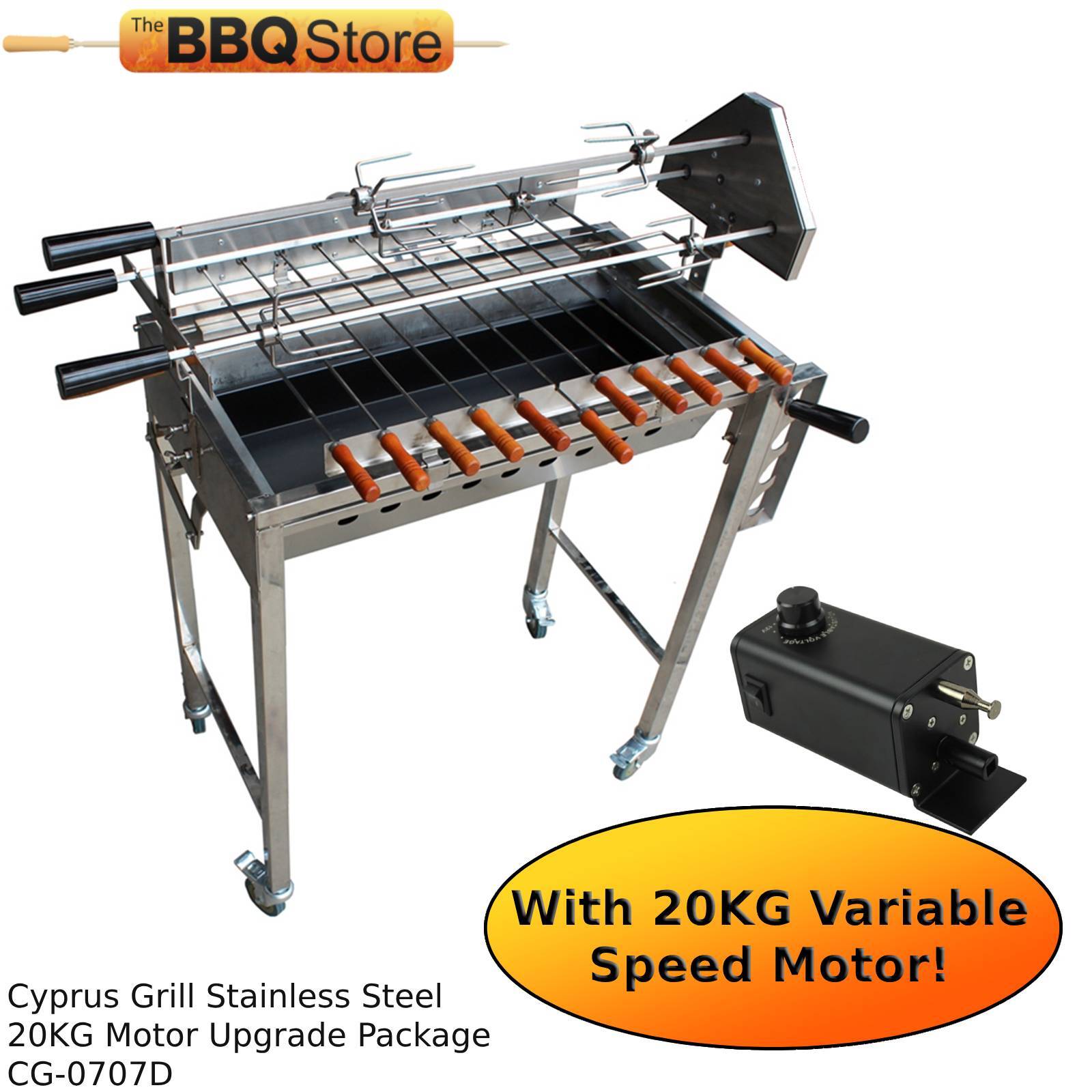 Cyprus Grill NEW with height adjustment Stainless Steel BBQ Spit Rotisserie With 20KG Variable Speed Motor Upgrade - CG-0707D