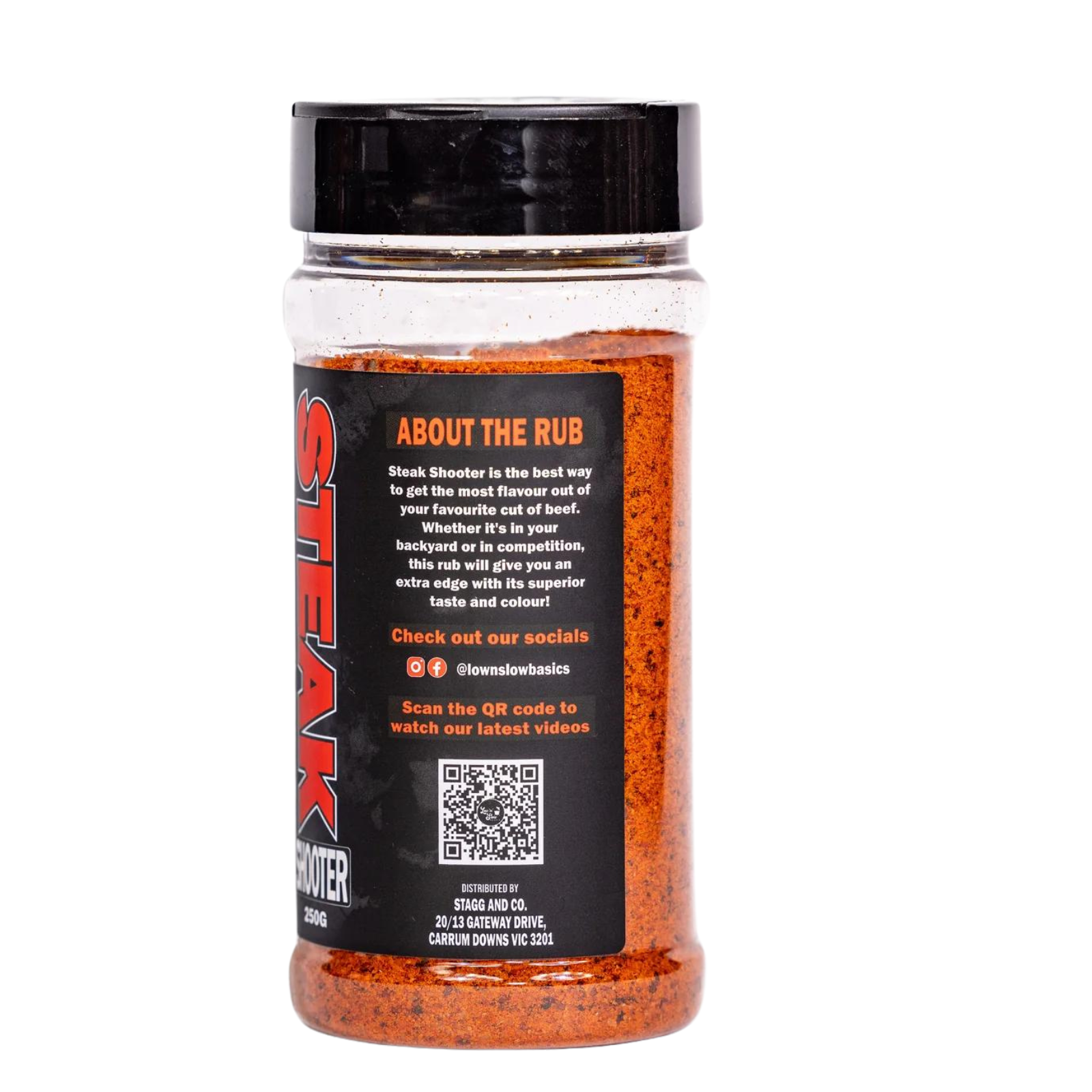 Elevate your steak game with the Low n Slow Basics Steak Shooter, the ultimate seasoning to extract the maximum flavor from your favorite cut of beef. Whether you're grilling in your backyard or competing in a barbecue contest, this rub provides a superior taste and vibrant color that gives you an undeniable edge.